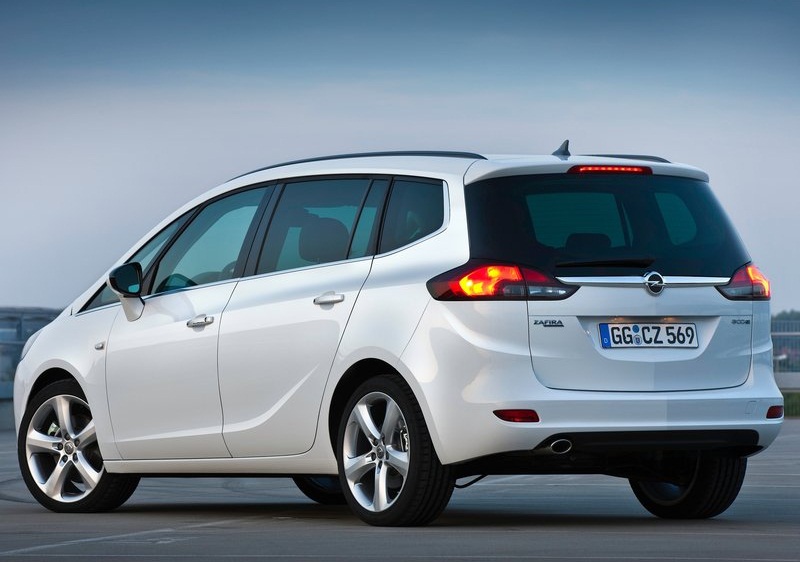 CAR GARAGE | Opel Zafira Tourer (2012) | But the third-generation Zafira's Innovations go well beyond this newly developed, flexible seating configuration. The Opel Zafira Tourer as a whole demonstrates a big step forward and expresses new ambitions. The engine range on offer for the new Opel Zafira Tourer will initially consist of highly efficient diesel and gasoline engines with 81 kW/110 hp output from 121 kW/165 hp to. Shortly after the start of sales, Especially an Eco flex low-consumption models with a 2.0 CDTI common-rail turbo diesel engine and standard Start / Stop technology Zafira Tourer will join the family. The Opel Zafira 1.6 CNG Turbo Tourer Ecoflex (110kW/150hp) will be on the market in early 2012.